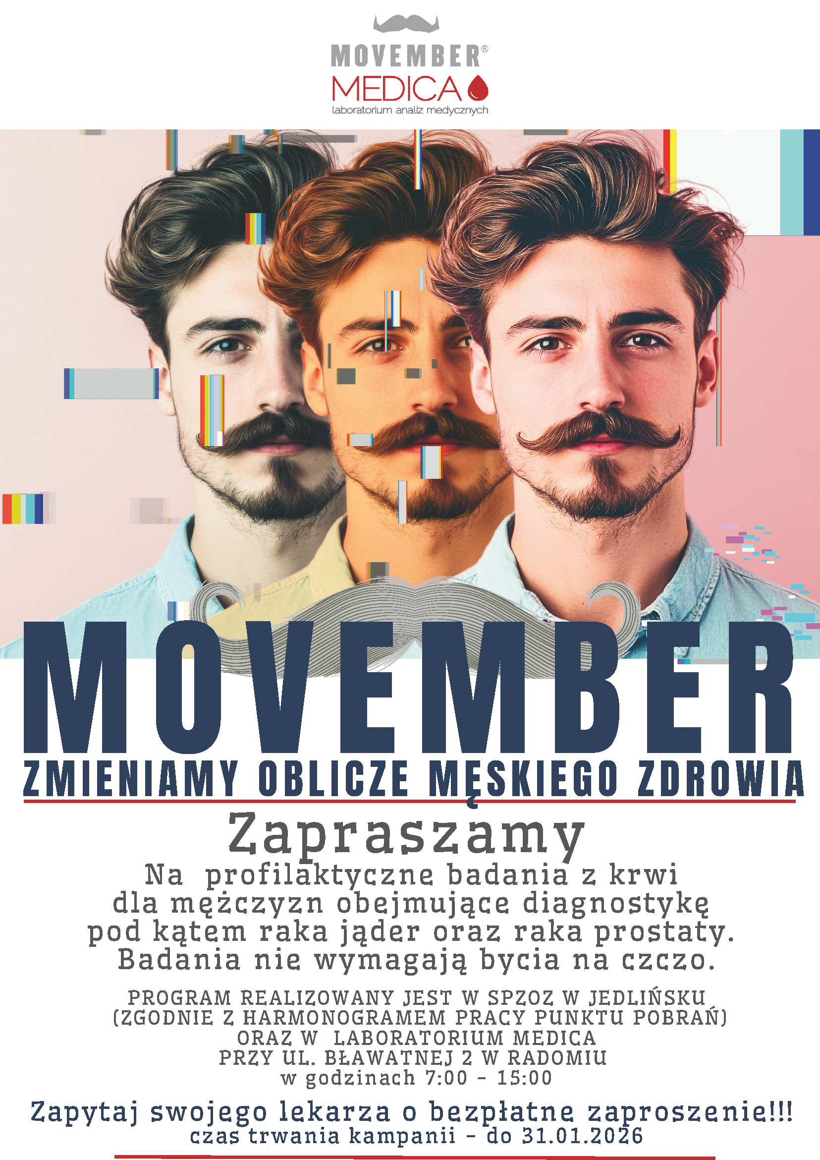 Szanowni Państwo, miło nam poinformować, że Samodzielny Publiczny Zakład Opieki Zdrowotnej dołączył do kampanii Mosznowładcy 2025. W ramach akcji oferujemy bezpłatne badania dla mężczyzn - pacjentów SPZOZ w Jedlińsku, Wsoli i Bierwcach oraz płatne badania na hasło MOSZNOWŁADCY dla mężczyzn nie będących naszymi pacjentami. W ramach kampanii oferujemy: badanie USG…